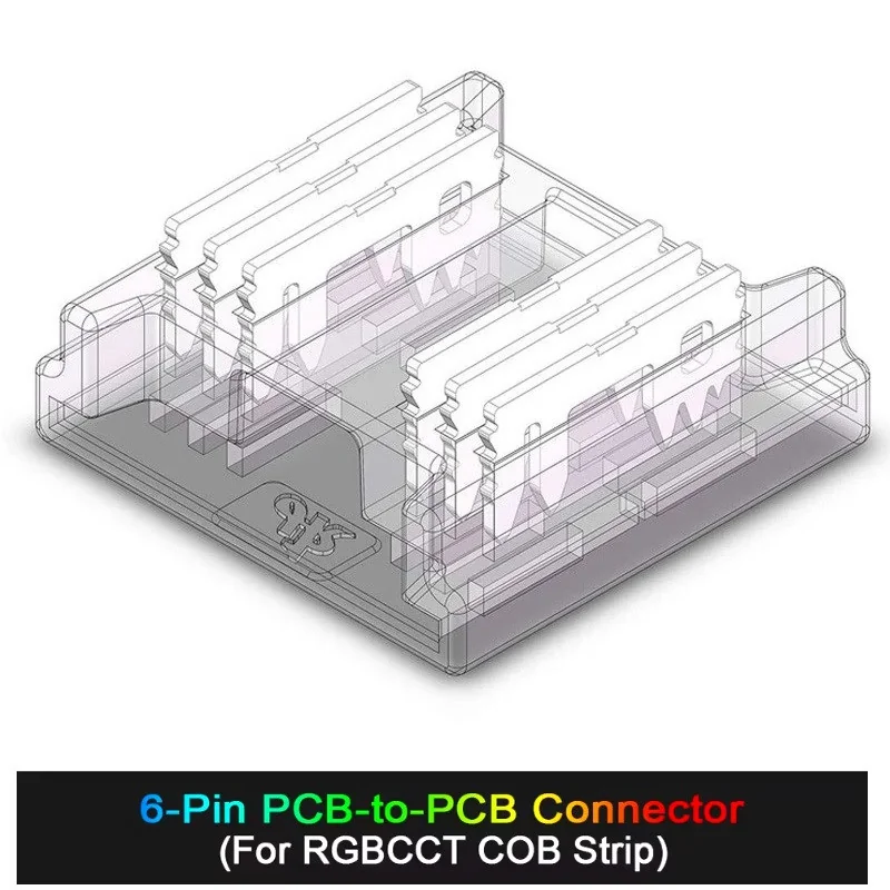 This connector is a great solution for connecting LED tape to LED tape 12mm wide 6-pins (WRGBW/RGB+CCT).