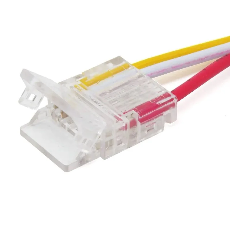 Tape to power (15cm wires) transparent connector for IP20 Single Colour COB (2-pin) LED tape 5mm wide, simple and easy installation.