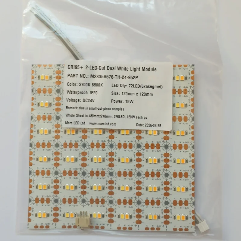 Sample of 24V 120W 2700K-6500K 2-LED-Cut Dual-White Flexible Back Light Module/ Sheet SMD2835